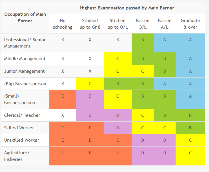 The Socio Economic Classification (SEC) of Households is defined by twin variables (The Occupation of the Main Earner & the Highest Examination passed by the Main Earner) as follows;